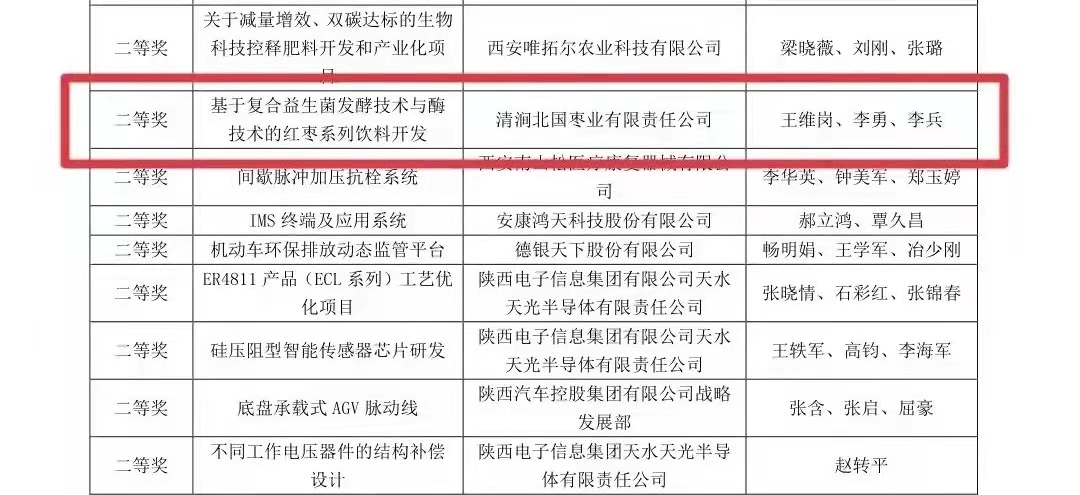 喜訊!北國棗業(yè)公司兩項(xiàng)目榮獲陜西省企業(yè)“三新三小”創(chuàng)新競賽獎項(xiàng)