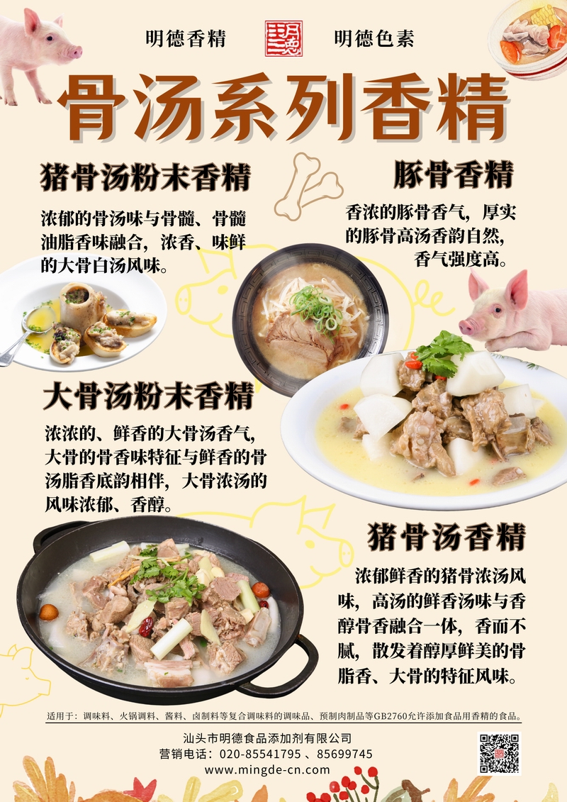 打造濃郁湯底的關鍵風味解決方案——明德骨湯系列香精,為工廠產(chǎn)品加“骨”提鮮隨著高湯類產(chǎn)品在調(diào)味品、預制菜、湯包等領域的快速發(fā)展,消費者對“湯味還原度”和“骨香真實感”提出更高要求。